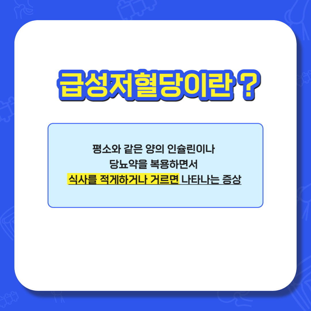 평소와 같은 양의 인슐린이나 당뇨약을 복용하면서 식사를 적게하거나 거르면 나타나는 증상