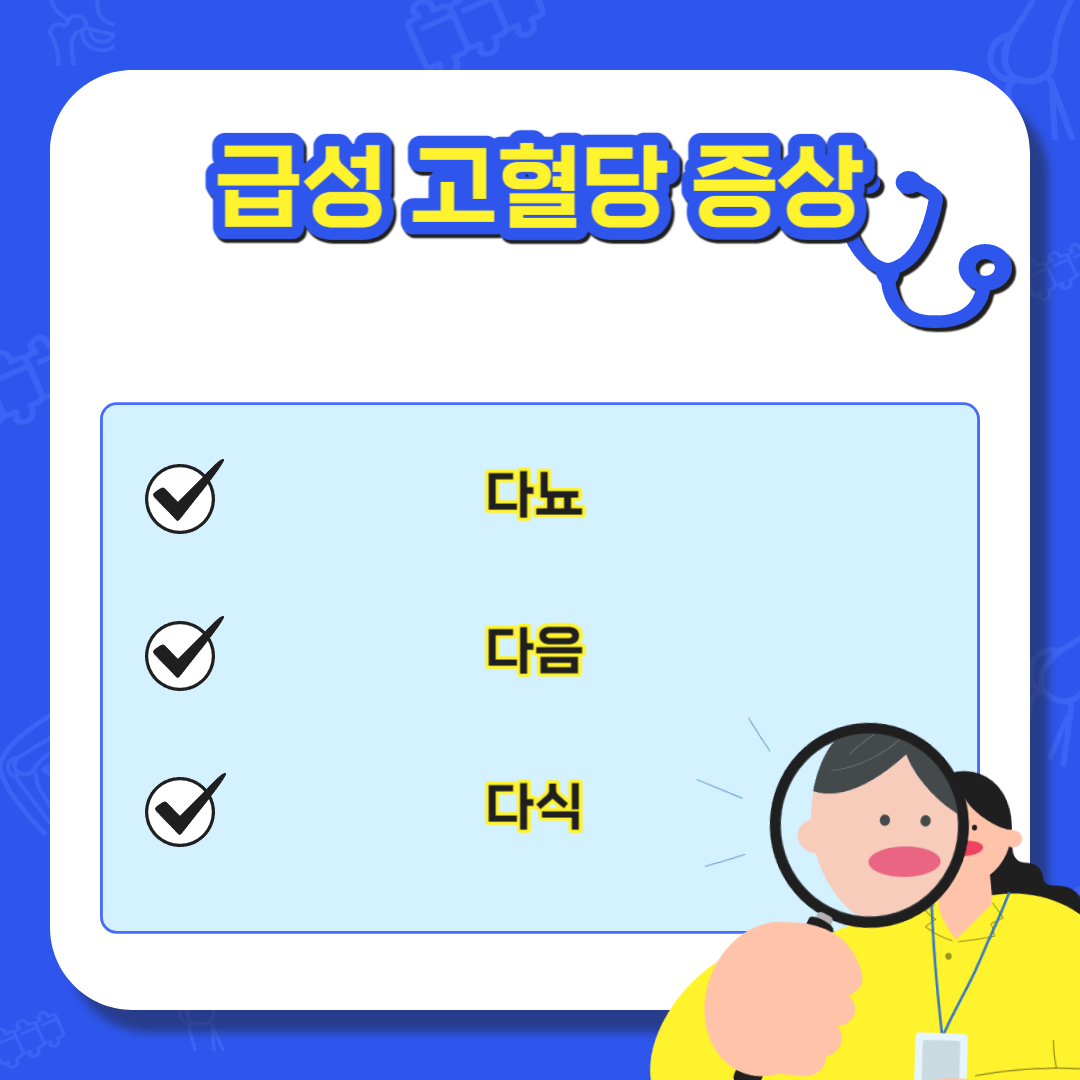 이렇게 증상이 나타날때까지 가면 혈당이 많이 높아진 경우이니 이런 경우에는 절대 무시하지 마시고 검사를 진행해보셔야 합니다