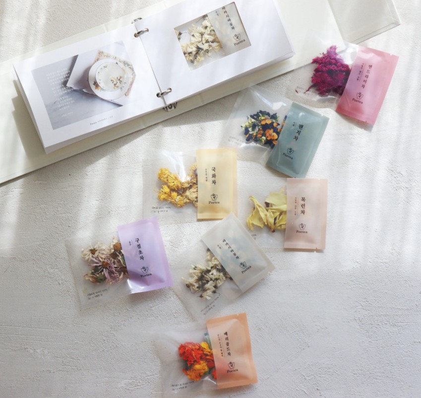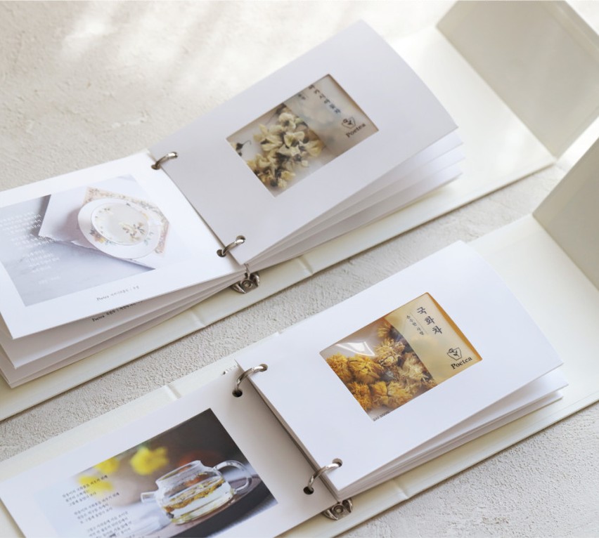 7가지 꽃차를 앨범 형태로 만들어 책장을 넘기며 꽃차를 고르수 있습니다
