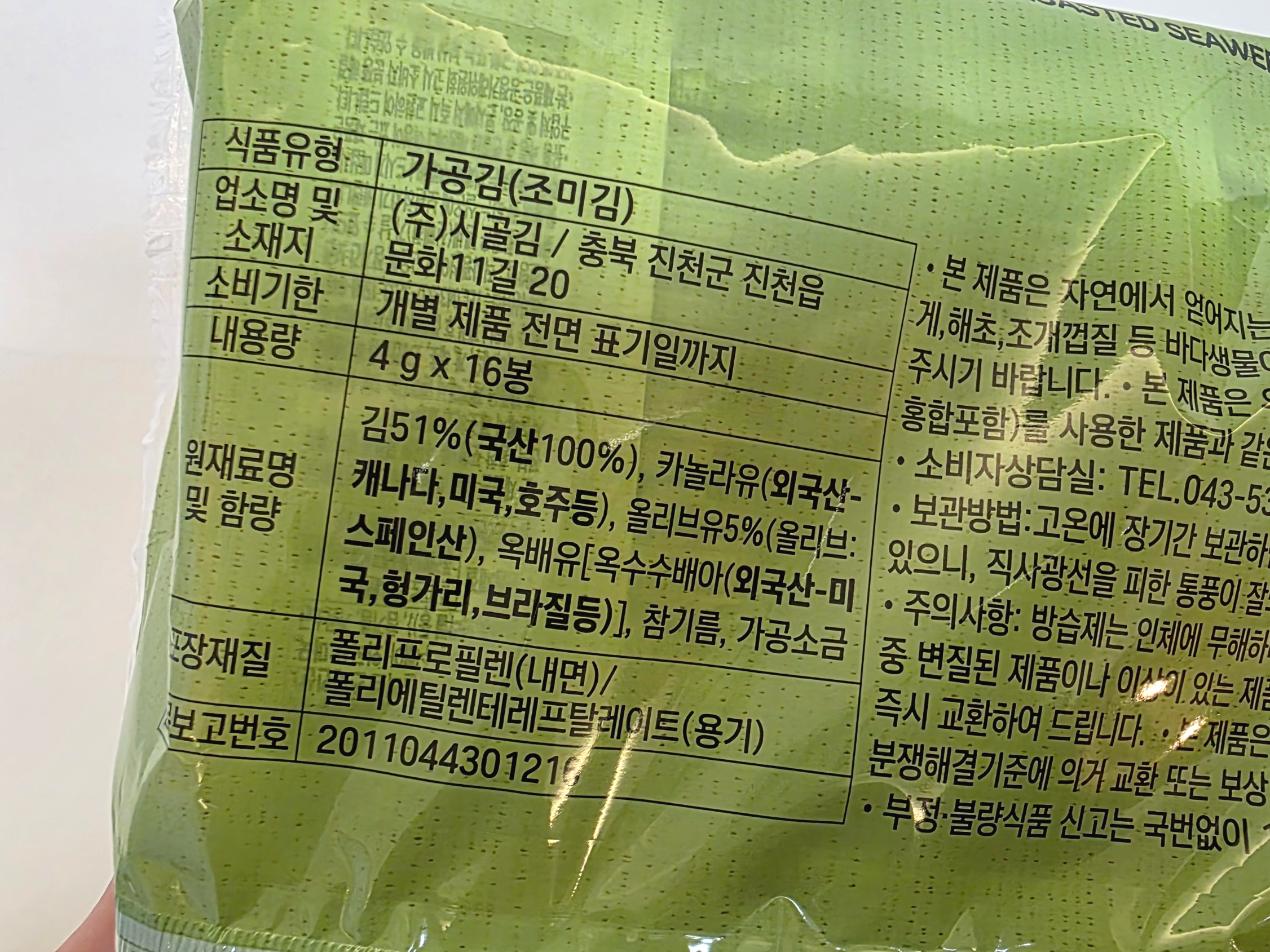 국산 김 100%로 만들어졌다는 점이 먼저 눈에 들어왔고,