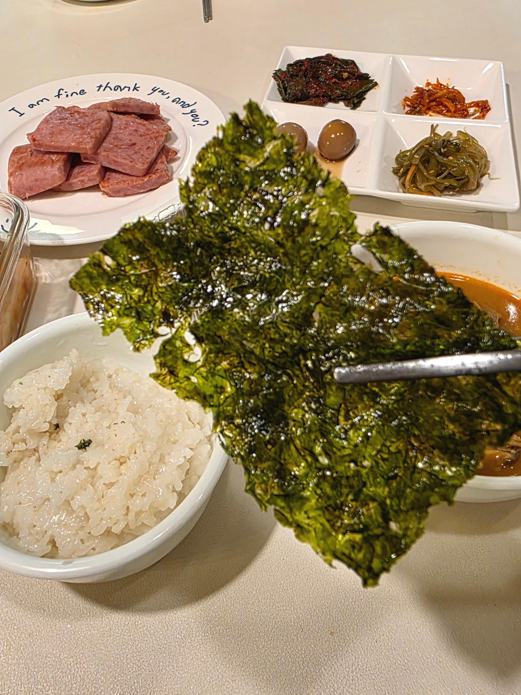 따뜻한 밥에 김 올려서 먹는 조합은 역시 기본이죠.